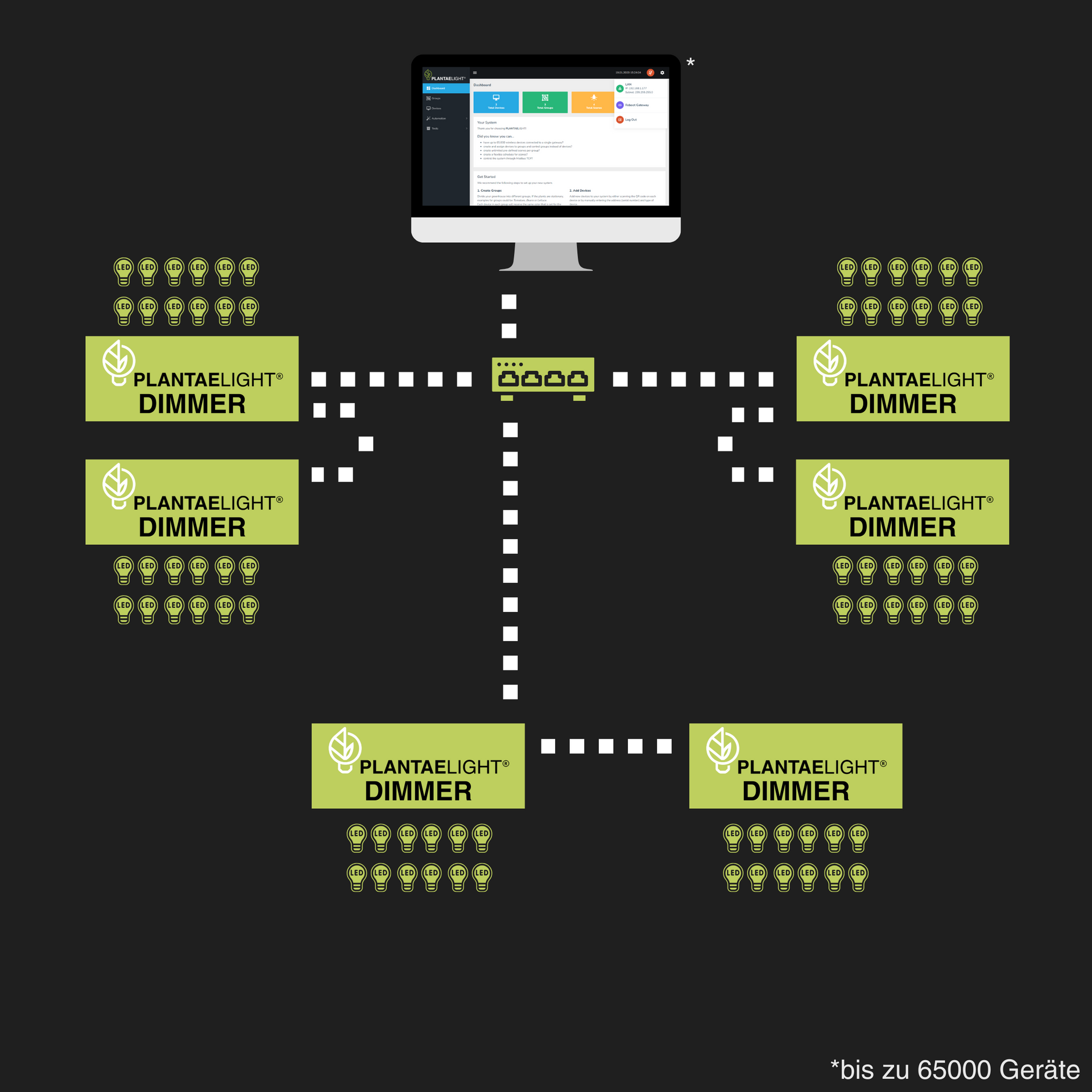 Configuration, control and monitoring are carried out centrally via the PlantaeLight Dashboard – intuitive, clear and in real time. Thanks to fixed IP assignment and structured cabling, a highest level of reliability and network transparency guaranteed.