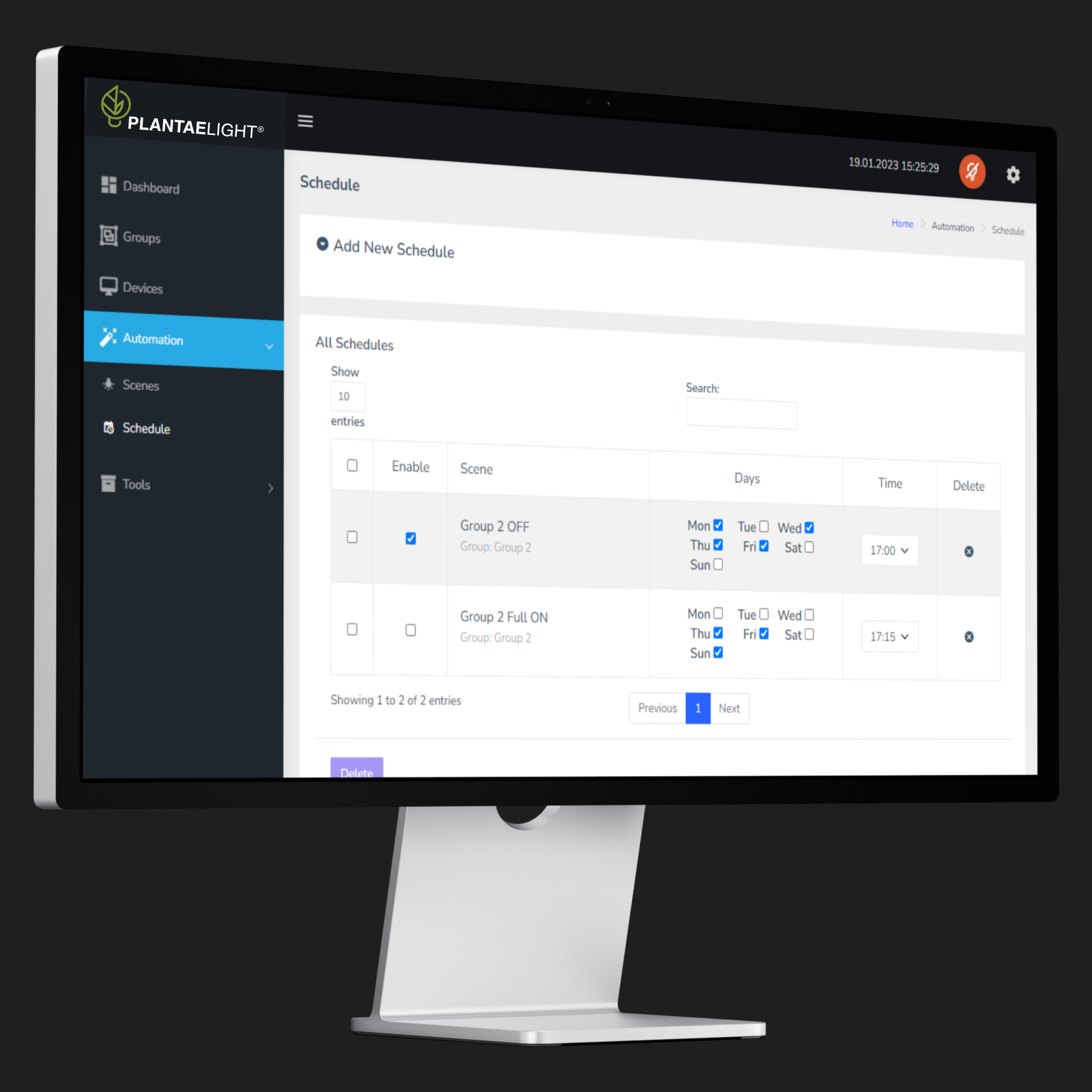Effizient bedeutet für den Betreiber von großen Farmen auch, dass die Überwachung der Einzelleuchte auf Stickebene und der jeweiligen Lichtfarbe integriert ist. Somit wird der Betriebsaufwand auf ein Minimum reduziert.